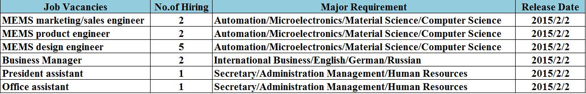 If you are interested in the following opportunities, Please send your resume to info@timelitemems.com